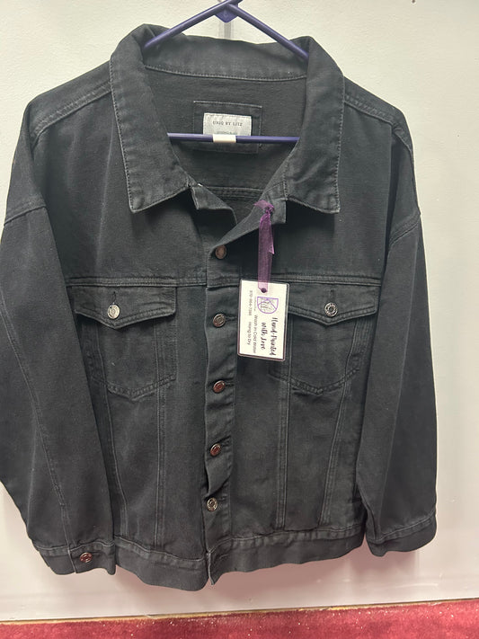 Jean Jacket - Hand-Painted "Epiphany" Uniq by Liz - Mountain and Moonlit Lake